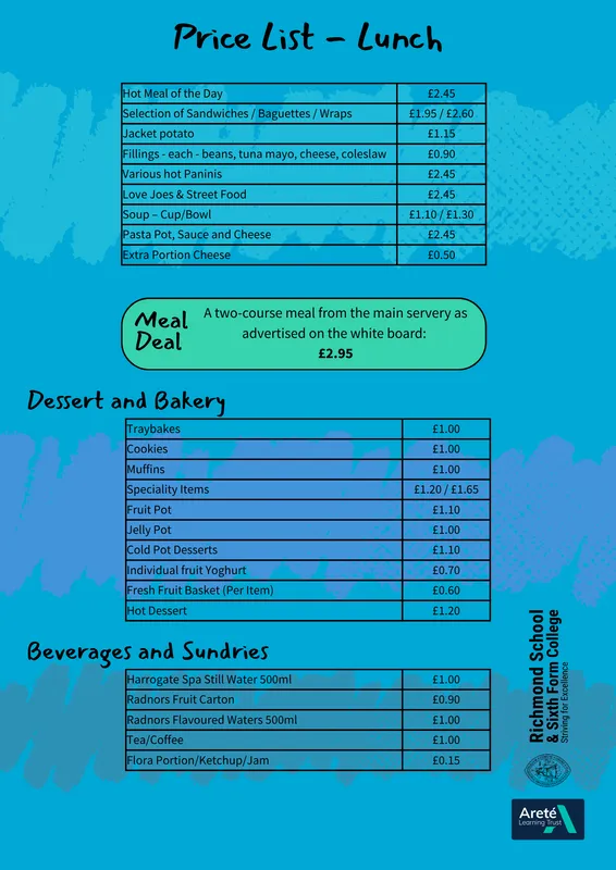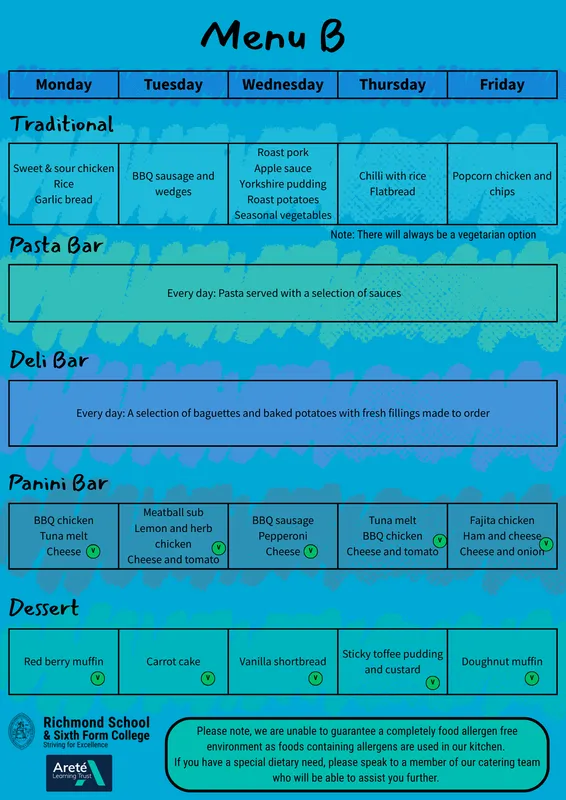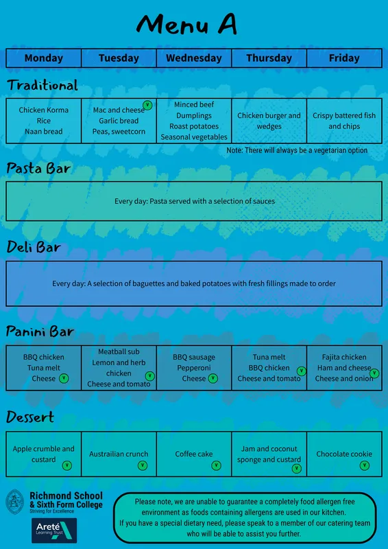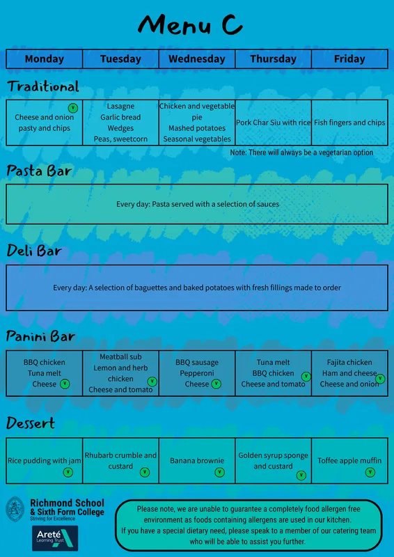 If any student has an allergy or special dietary need, please speak to a member of our catering team who will be able to assist further.